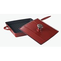 A versatile performer, this panini grill and press set in chianti red from Mario Batali is perfect for grilling Italian panini sandwiches made thin and crisp with the heavy press/lid as well as searing steaks, chicken and fish filets. The pan's cast iron core guarantees even heat distribution, so your food won't burn, and it's been given a matte enamel coating on the interior of the pan that requires no seasoning or special care. Oils used and created when cooking penetrate the pores of the matte enamel to create a natural, smooth, nonstick surface, which provides easy food release and quick cleanup. The grilling surface measures 11 by 11 inches. The heavy lid is accented with a cast stainless steel knob, and it's further complemented by a helper handle for easy lifting and transport to the table. Safe for gas, electric and ceramic-top ranges. Hand wash only. Backed by a limited lifetime warranty.